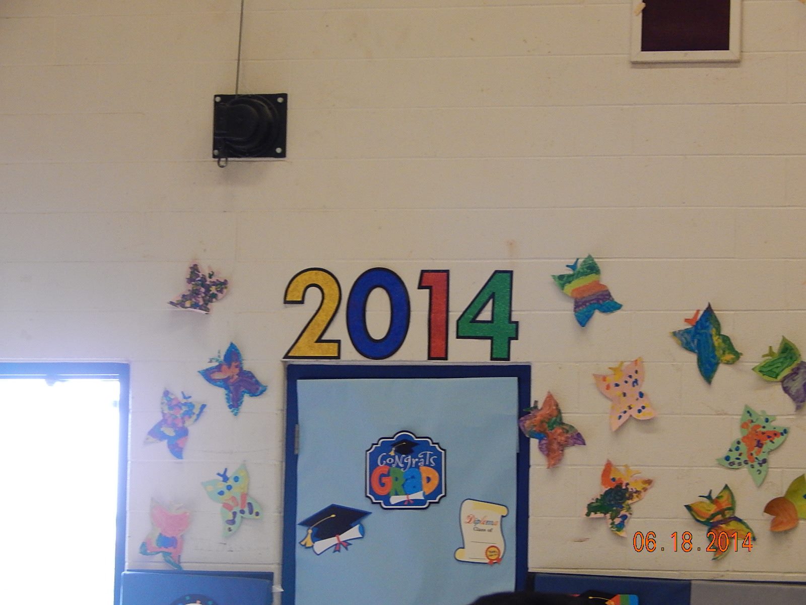 My mom and D’s parents all met at our house at 10 am and we made our way to the school. I found an aisle seat and had tears in my eyes as I took in the artwork on the walls, the painted butterflies and the 2014 Graduation decorations. The students filed in, looking sharp in their party clothes; boys in ties, girls in pretty dresses. Queue Happy by Pharrell Williams and each of the 34 students skipped their way to the stage and took a seat. It was adorable.