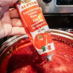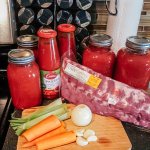 Finally, I use a combination of strained tomatoes our family jars every year, plus the strained tomato jars from the grocery store. This way, if the water content is higher in our homemade jars, it is balanced out by the store-bought tomatoes. But it’s up to you what combination you use, if any.
