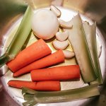 Add olive oil to large pot and once heated, add onion, carrots, celery and garlic and cook for a few minutes.